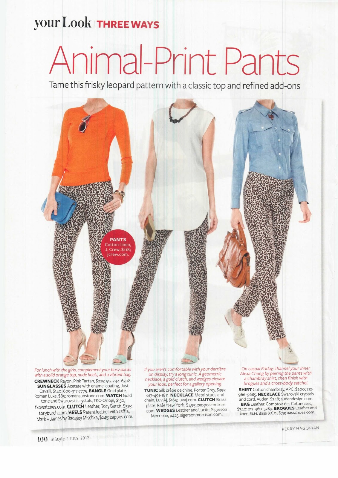 The July issue of Instyle magazine has some cute styling options for the Safari Cat Cafe Capris I thought I would share with you. These capris are currently on sale in store for $44.99.